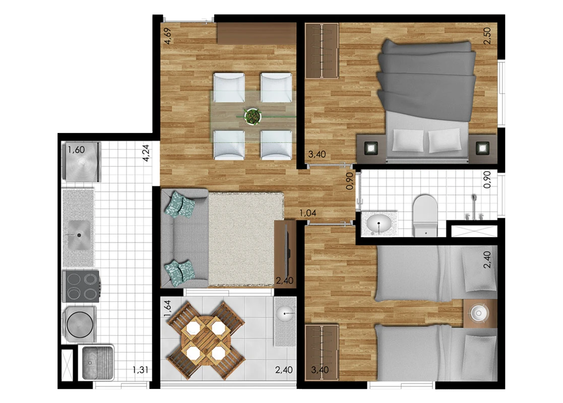 2 e 3 dormitórios (opção com suíte)