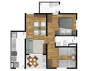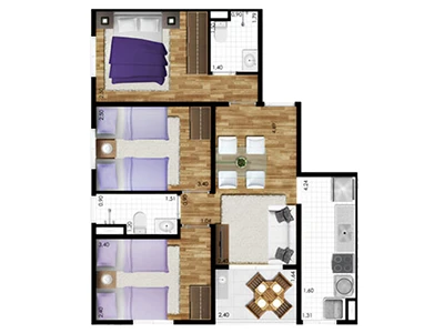 3 dorms. (opção com suíte) e 2 dormitórios