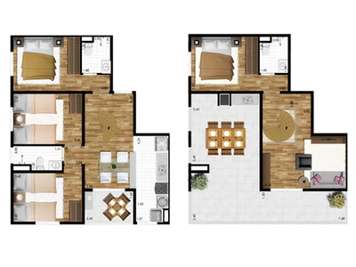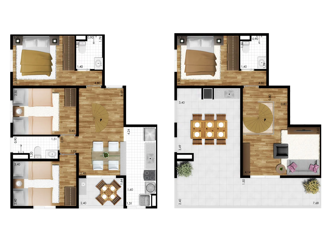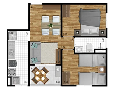 2 e 3 dormitórios (opção com suíte)